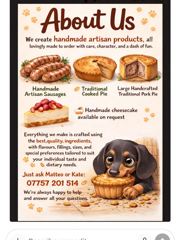 Delicious hand crafted pies with every ingredient sourced from the finest quality produce. Individualised to meet personal specifications and dietary requirements such as gluten free/allergies. Vegetarian and vegan options available.